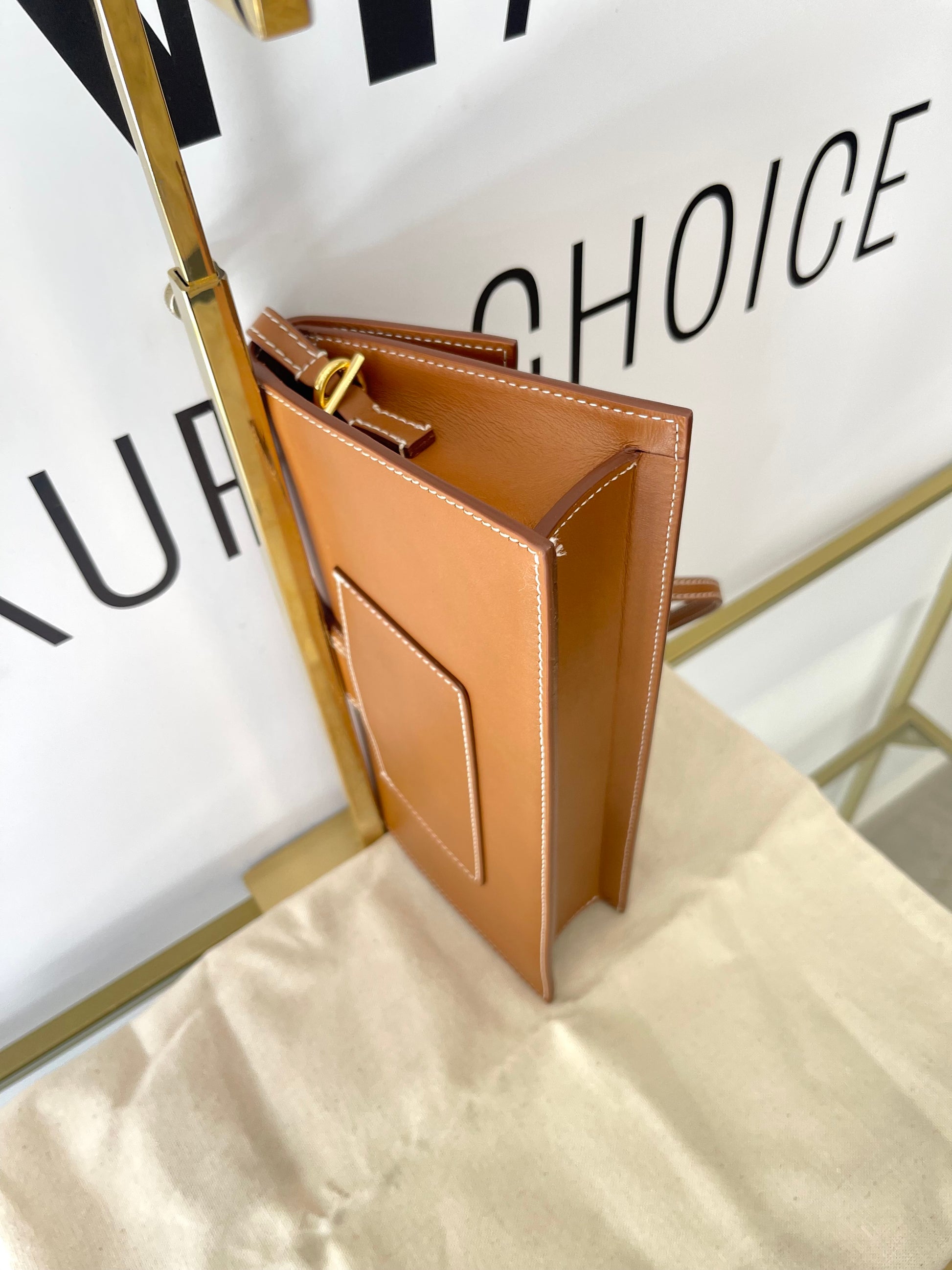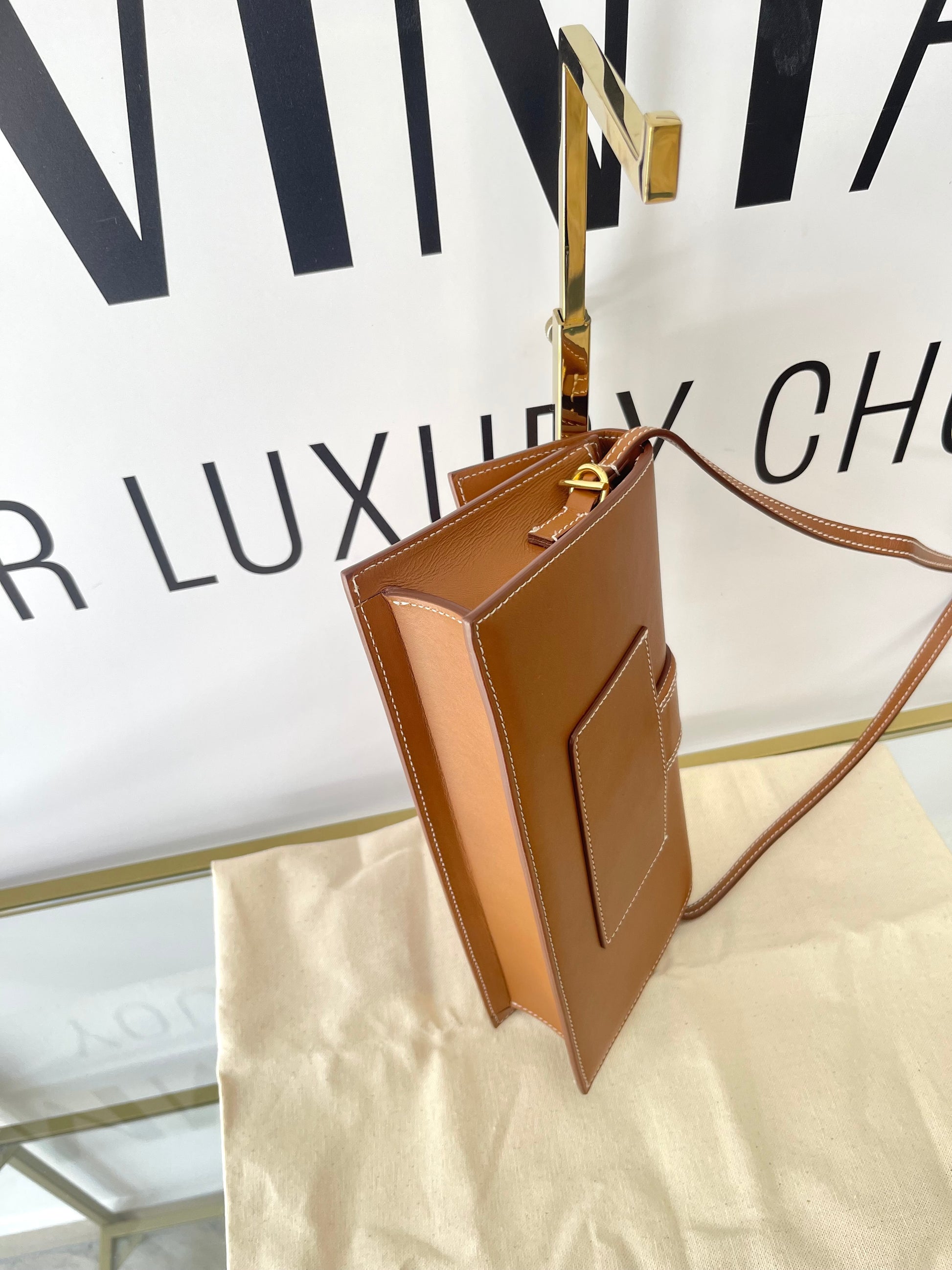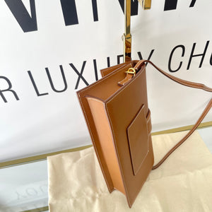 - Borsa a spalla strutturata - Chiusura magnetica con patta- Tracolla sottile- Tasca applicata sul retro- Tasca interna per carte di credito- Finiture e logo in metallo dorato- Modello interamente foderato in cotone- Misure:28 x 13,5 x6cmPari a nuovo, completa di Dustbag