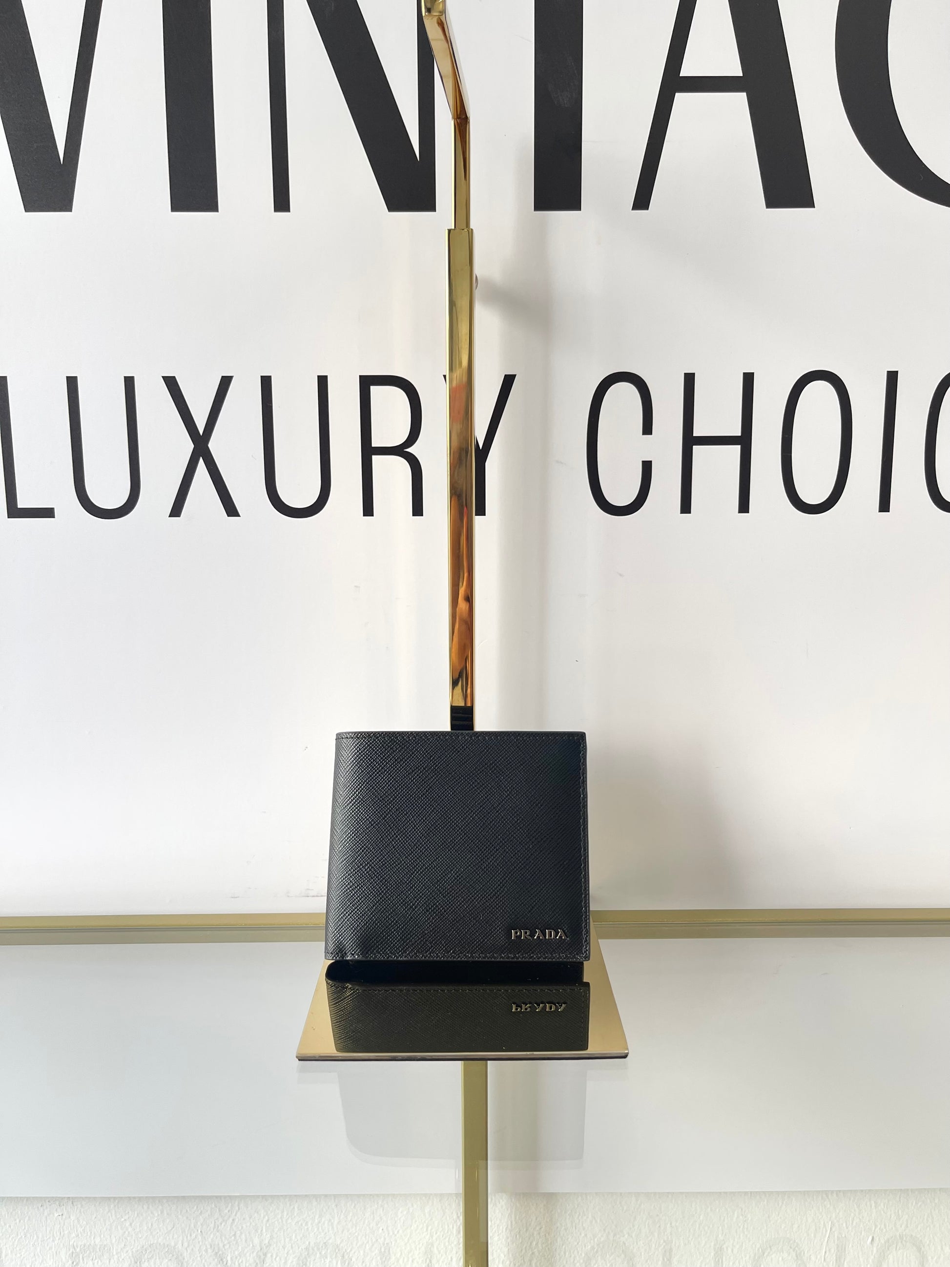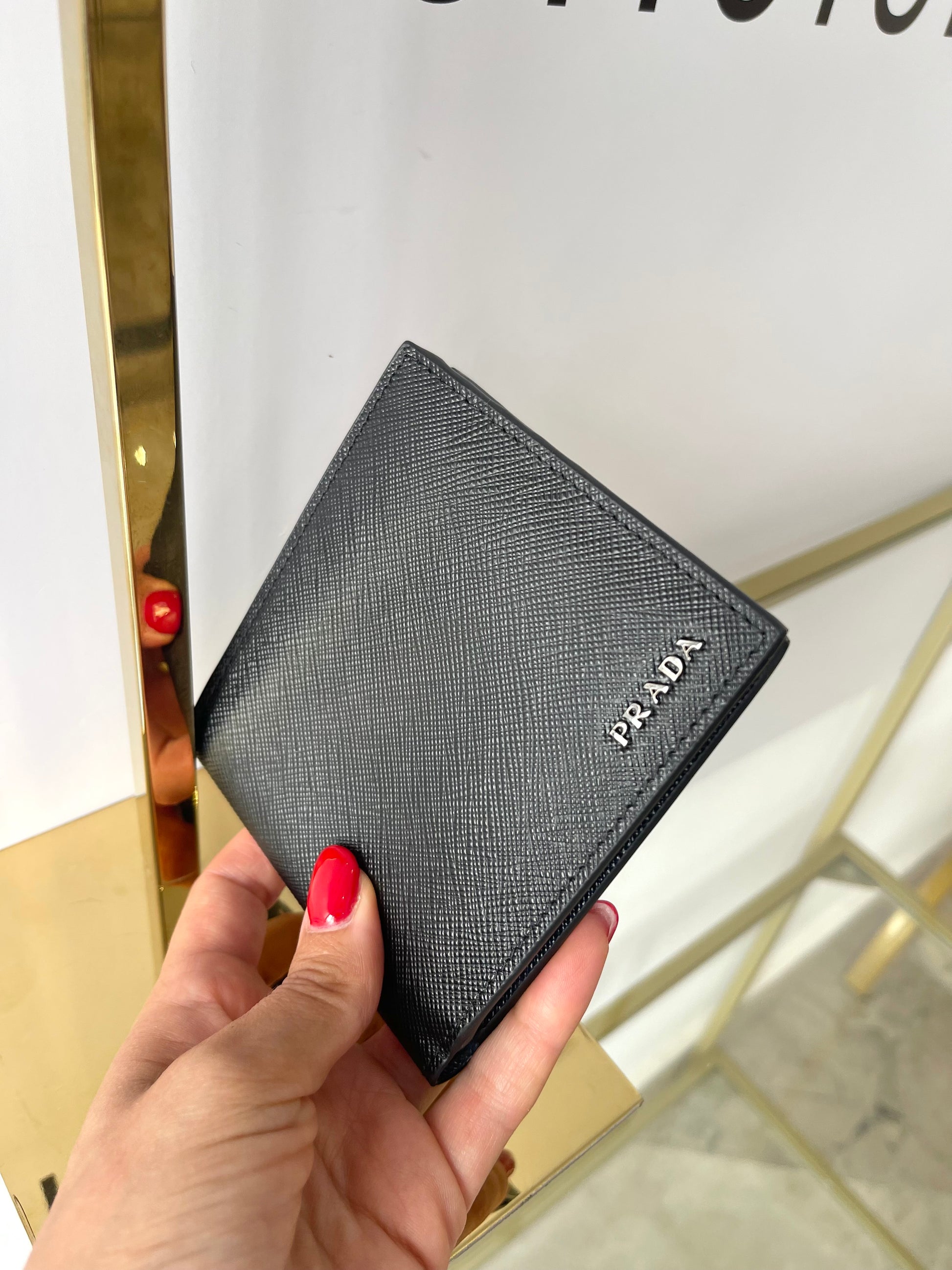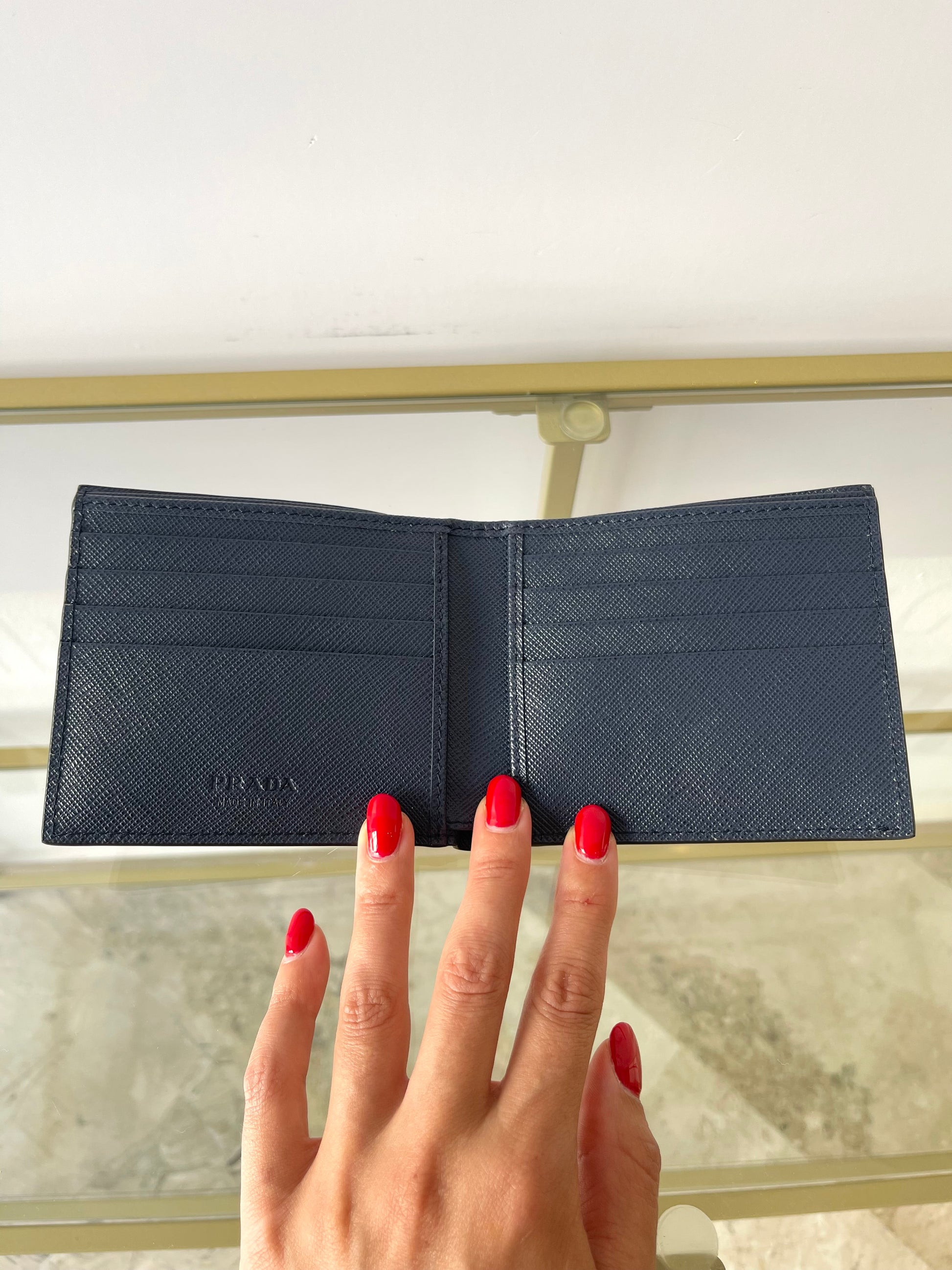 Portafoglio Prada da uomo.Pari a nuovo.No dustbag.Colore: nero/blu Misure:Chiuso 11 x 9,5 cmAperto 22 x 9,5 cm